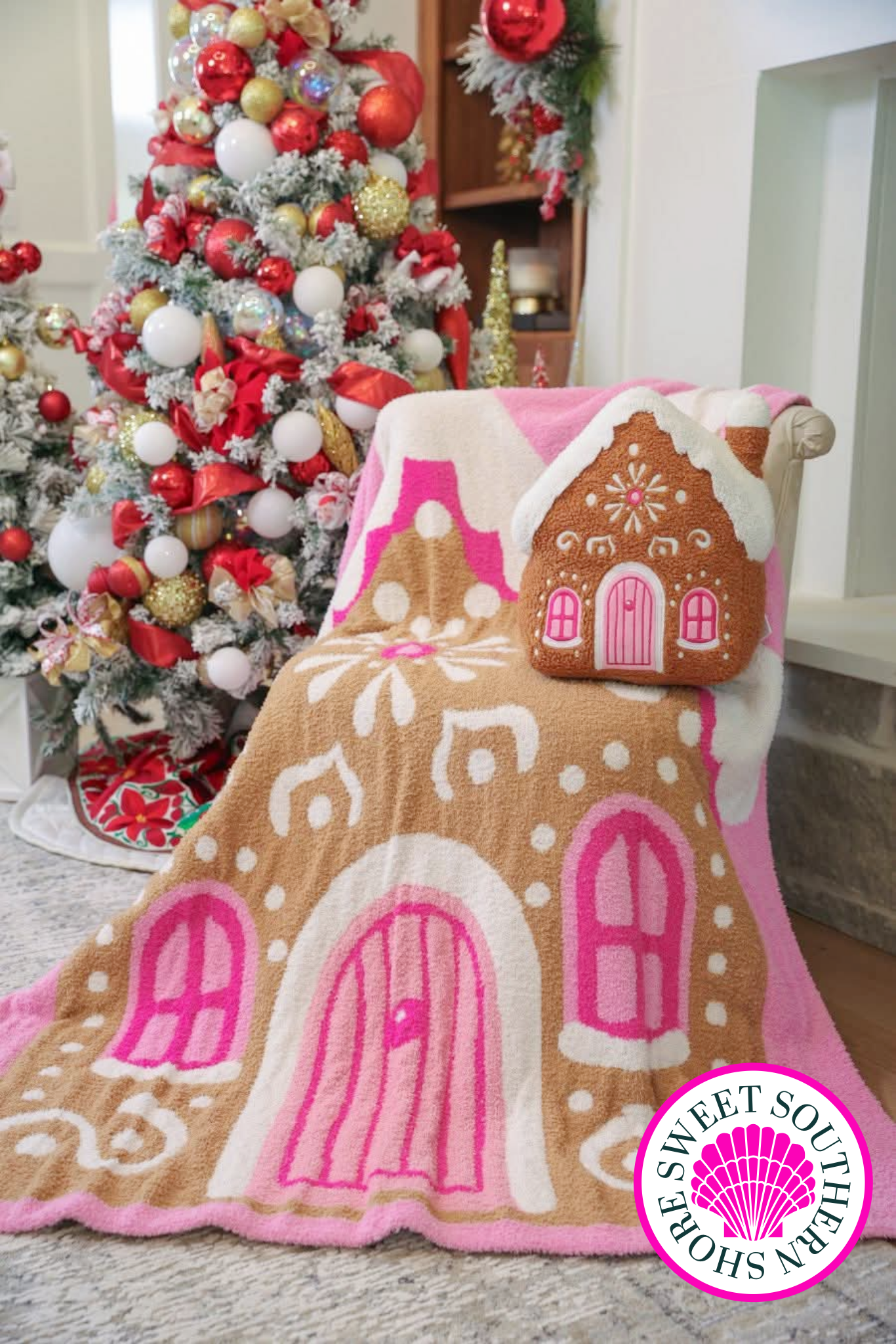 ❄️Snuggle into the charming Whimsical Gingerbread House Blanket, showcasing a frosted gingerbread house on a sweet pink background. This cozy and cute throw is perfect for adding a playful touch to your home!